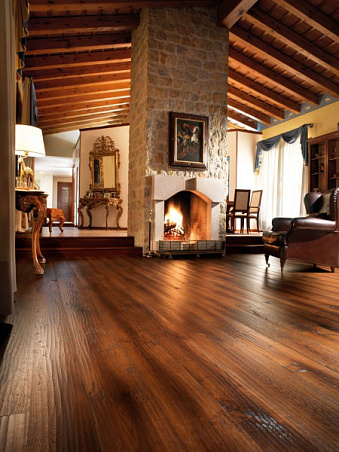 Паркетная доска, дуб, струганая вручную, крашеная, объемная шлифовка, покрыта лаком