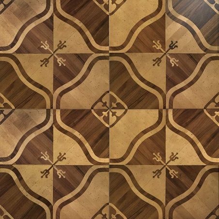 Художественный паркет из древесины американского ореха и клена, инкрустированный вручную, крашенный, с эффектом старения, покрыт лаком