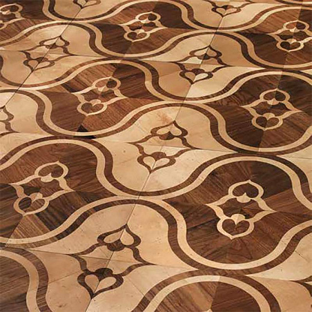 Художественный паркет из древесины американского ореха и клена, инкрустированный вручную, с эффектом старения, крашенный, покрыт лаком