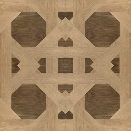 Художественный паркет из древесины дуба, с вставками из дуба копченого, инкрустированный вручную, брашированный, крашенный, покрыт лаком или маслом