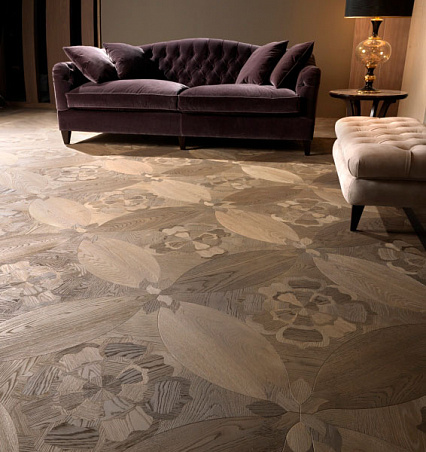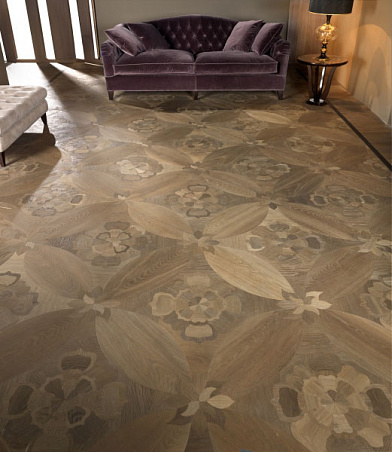 Художественный паркет из древесины дуба, инкрустированный вручную, брашированный, покрыт лаком