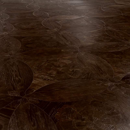 Художественный паркет из древесины дуба, инкрустированный вручную, с вставками ввиде цветка, брашированный, крашеный, покрыт лаком